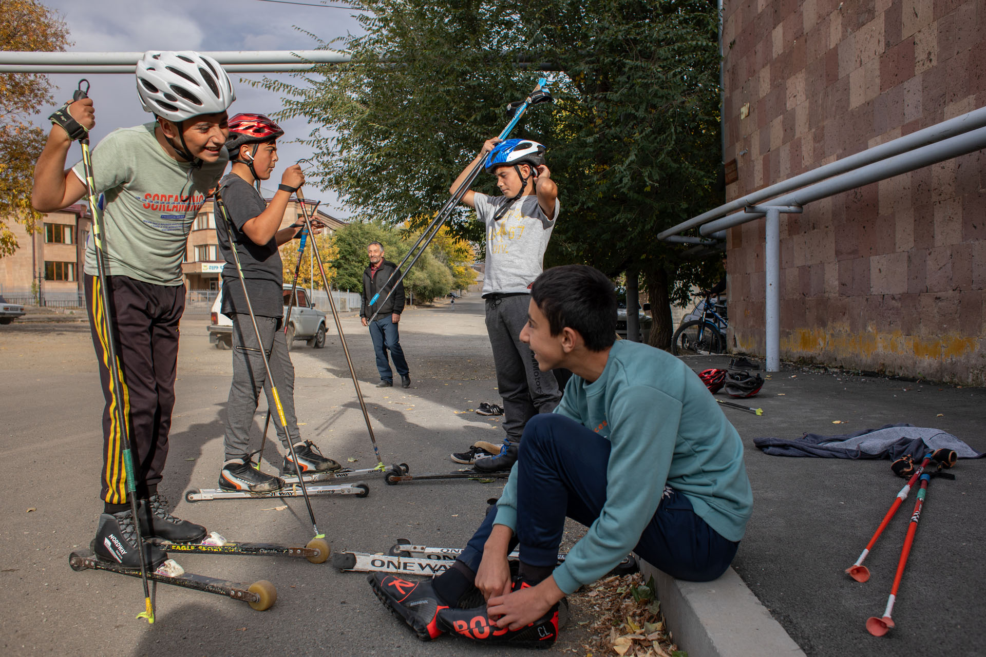 The hardships of Ashotsk residents go beyond housing. Shirak province is one of Armenia’s poorest regions. With few jobs, families rely on subsistence farming or money sent by relatives working in Armenia or Russia. Geopolitical tensions cast a shadow over daily life not only in the region but across the country. Despite these difficulties, a local couple provides possibilities for the children. Artur Mikayelyan, coach of the Armenian national cross-country skiing team, and his wife, Alla, train local youth in skiing. Working with limited resources, often voluntarily. They offer opportunities for regular physical activity and personal growth. In this challenging environment, sport represents more than just exercise. Through skiing, youth find motivation, a sense of belonging, and resilience that help them cope with their uncertain circumstances and imagine a better future.
